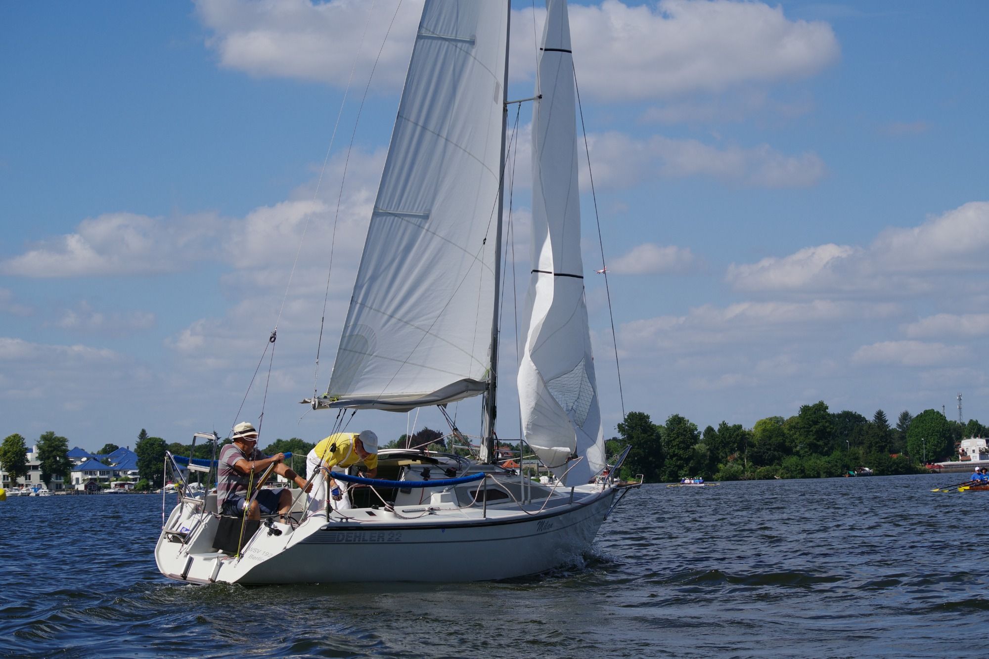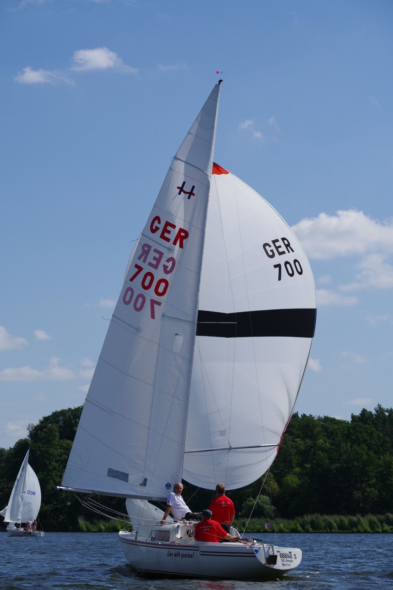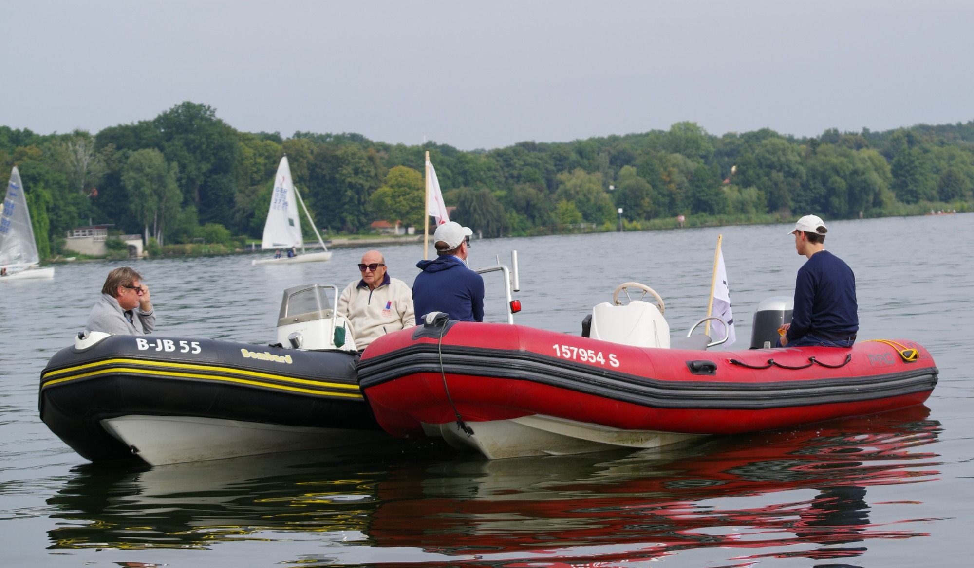 Die Wettfahrtleitung des Ausrichters Seglervereinigung 1903 Berlin e.V. nahm mich im G Boot mit auf die Regattabahn, wo ich auch noch in ein anderes Boot der Wettfahrtleitung umsteigen konnte um Fotos an den Wendetonnen zu machen. Dafür nochmal vielen Dank.